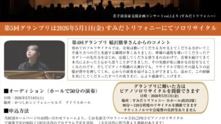 【SPA演奏家支援企画vol.5】ピアニスト募集2026 (1/17〆切)一般財団法人杉谷昭子ピアノアカデミーでは、将来有望な演奏家を支援する活動を大切にしております。オーディションは実音審査のみ、応募者全員の演奏を50分間ずつ拝聴させてい...
